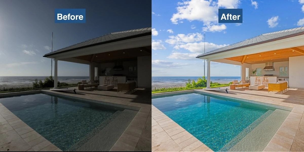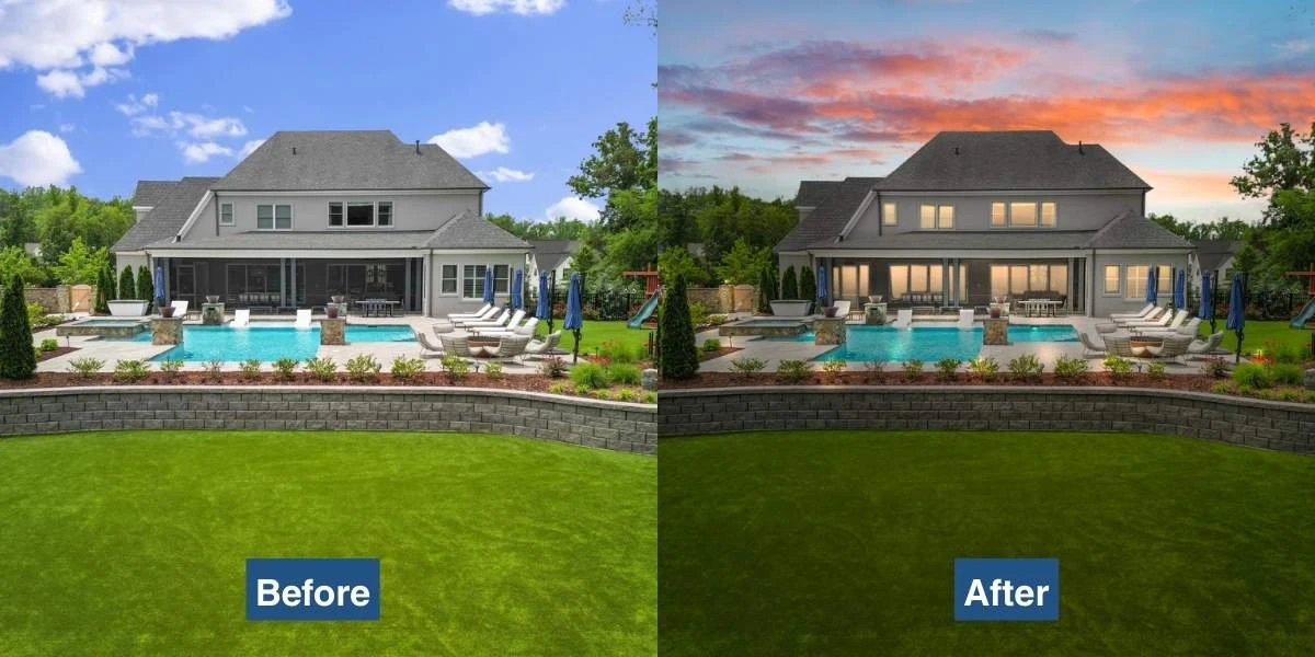 Techniques such as sky replacement, lighting adjustments, color correction, and lawn enhancement can make a property appear brighter, cleaner, and more inviting. Even small improvements can significantly increase the visual appeal of a listing.