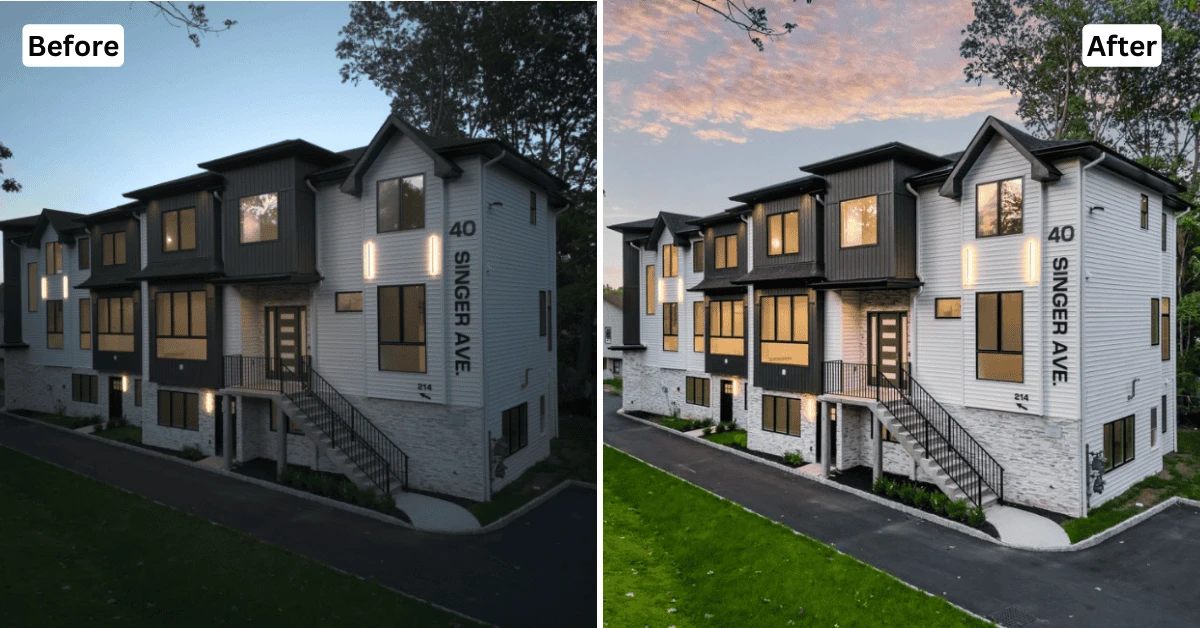 Automatic sky replacement has become one of the most essential capabilities in modern real estate photo editing, especially as listings compete across visually saturated platforms. Advanced AI systems are now able to accurately detect complex skylines, rooflines, trees, chimneys, and architectural edges with a high level of precision. This ensures that the replacement sky blends seamlessly into the original image, without harsh cut lines, color bleeding, or unnatural halos around buildings and foliage.