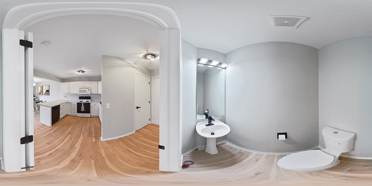 Compared to standard photo editing, the Nadir point is a unique integral feature of 360° photos. Needless to say, nothing breaks the immersion of a virtual tour like seeing a tripod "ghost" at the bottom of the sphere or a lens flare reflecting off a mirror. To alleviate this, expert 360 enhancement includes Nadir patching, which seamlessly replaces the tripod with a clean floor texture or a custom agency logo. Beyond that, editors can remove distracting elements like messy power cords, stray pets, or even "virtually stage" empty rooms to help buyers visualize the home’s potential.