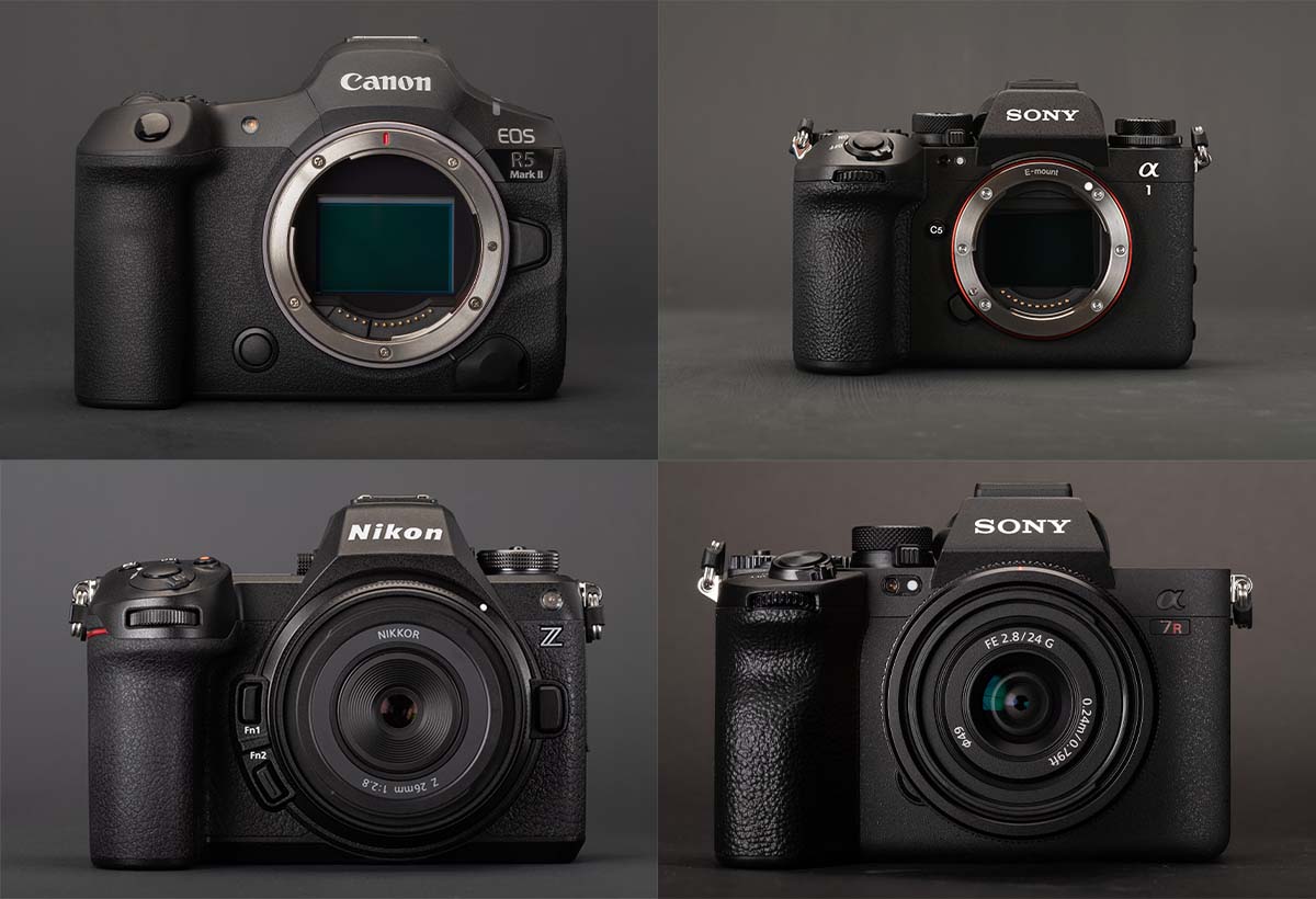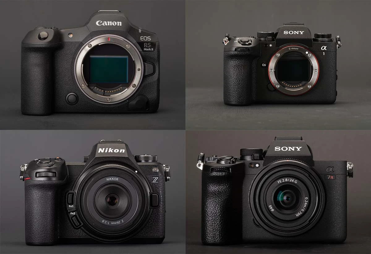 Canon EOS R5 Mark II (top left), Sony A1 II (top right), Nikon Z6 III (bottom left), Sony A7R V (bottom right)