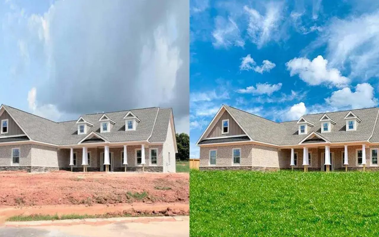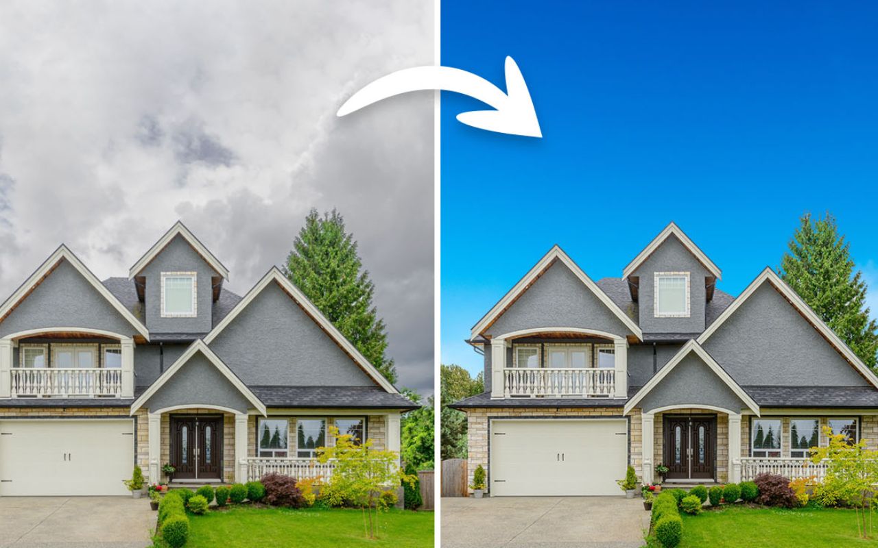 - Sky & Lawn Enhancement: Overcast skies and patchy grass are replaced with vibrant blue skies and lush landscapes—enhancing curb appeal with no reshoots.