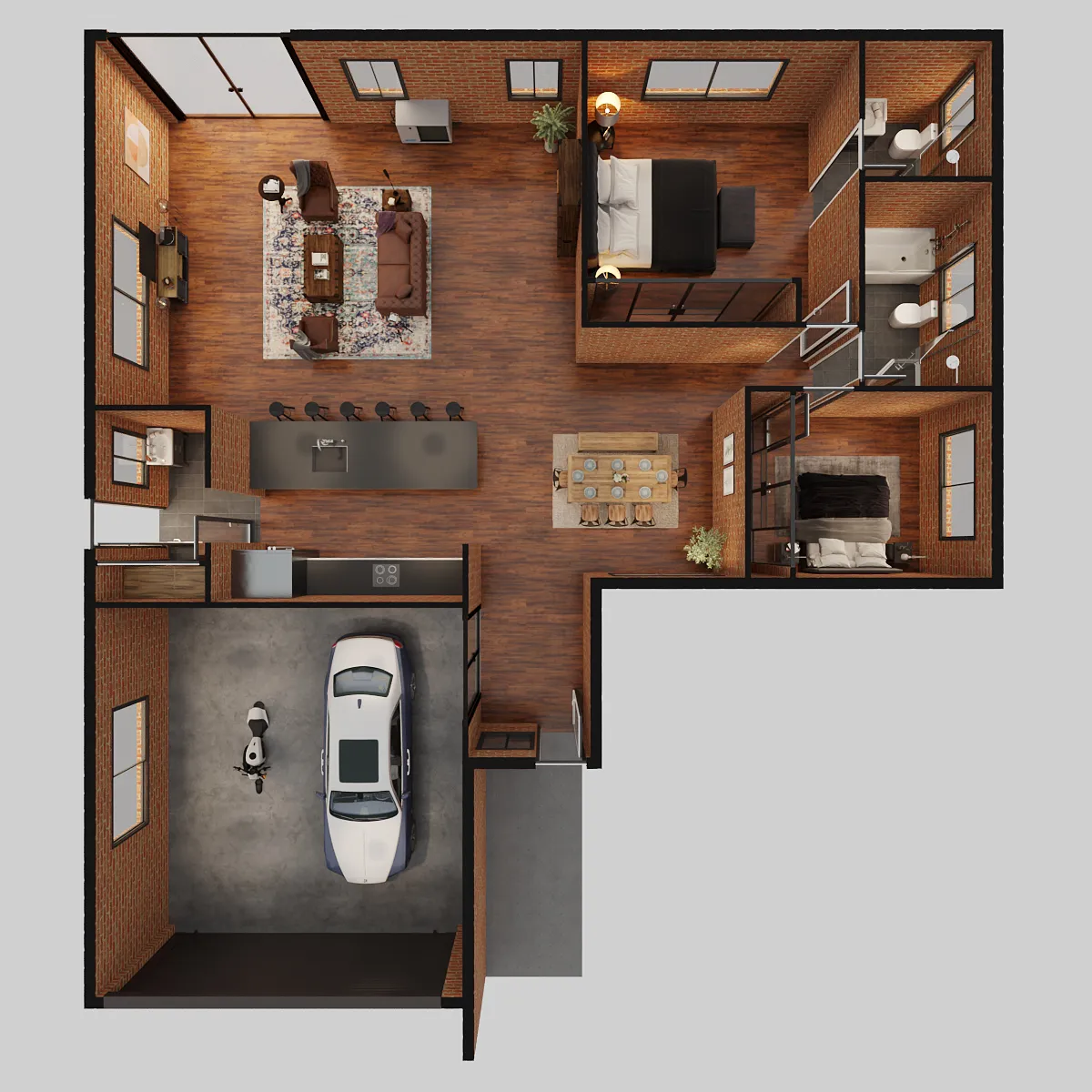 At Fotober, our expertise lies in transforming technical blueprints into high-conversion marketing assets. We provide precise 2D floor plans that offer an immediate grasp of the craftsman home layout, highlighting the functional transitions and structural integrity that buyers prioritize. To further elevate the experience, our 3D floor plans bridge the gap between simple diagrams and full-scale 3D rendering. These immersive models allow potential owners to visualize the depth of the woodwork and the spatial relationship between the signature front porch and the interior living spaces, offering a tactile sense of the home's quality.