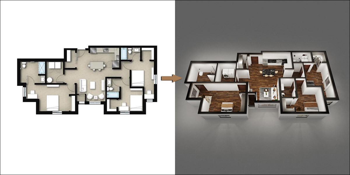 The transformative power of 3D floor plans brings the Craftsman house to life.