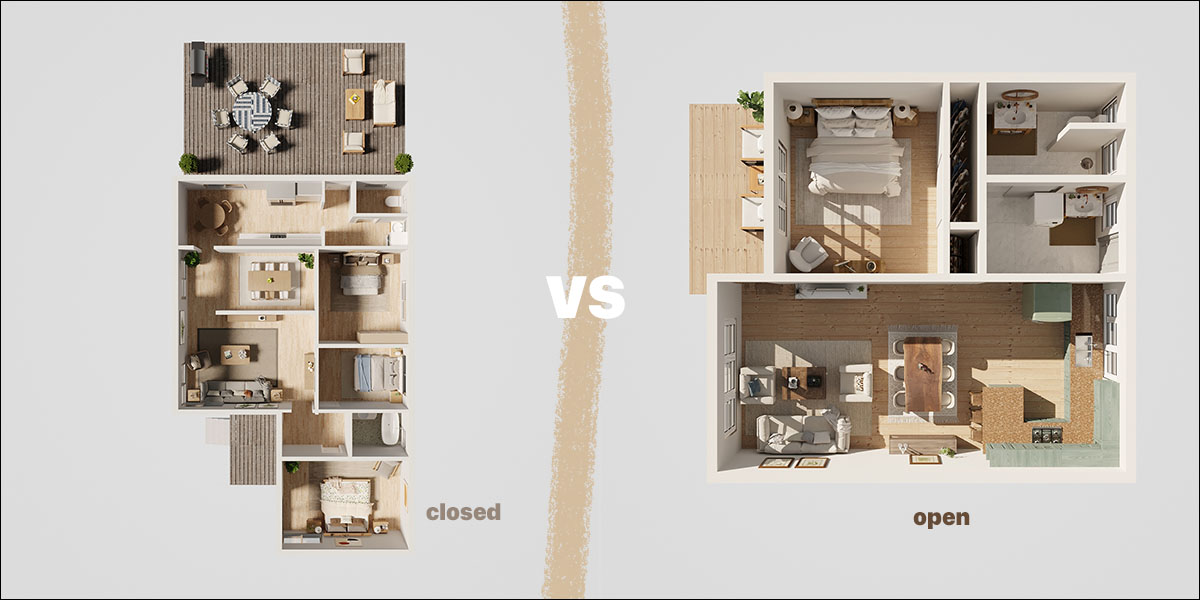 Open concept floor plans create a more inviting and expansive feel to the main living space.
