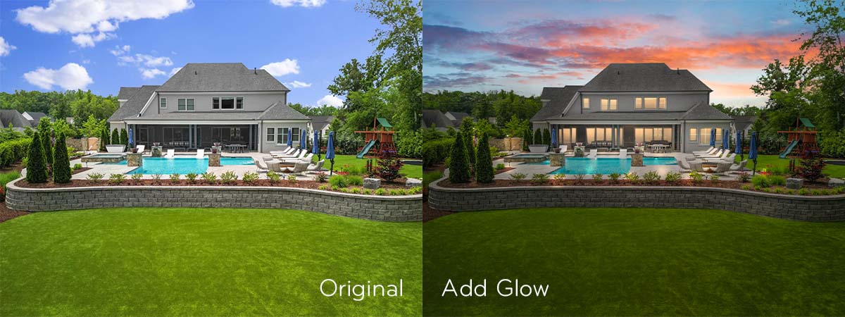 To complete the real estate twilight photo editing process, we need to "turn on" the exterior lights, such as porch lights, path lights, or pool lights.