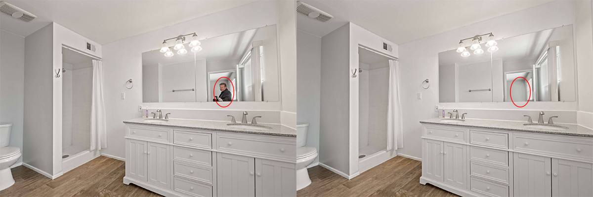 Lastly, reflection removal in real estate photos focuses on unwanted mirror images on polished surfaces. Whether it is a tripod visible in a bathroom mirror or a flash unit reflecting off a stainless-steel refrigerator, these distractions break the immersion of a property tour. While knowing how to remove lens flare in Photoshop addresses optical errors, mastering the removal of physical reflections is what truly creates that "magazine-ready" look.