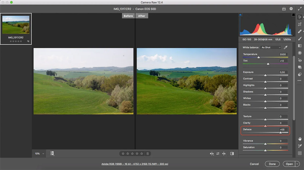 Lens flare often leaves a "veiling haze", a milky, low-contrast wash that shifts the color of the walls or furniture. To combat this, advanced editors use the Dehaze slider in the Camera Raw Filter as a localized adjustment. Instead of applying it to the whole image, use a radial filter over the flared area.