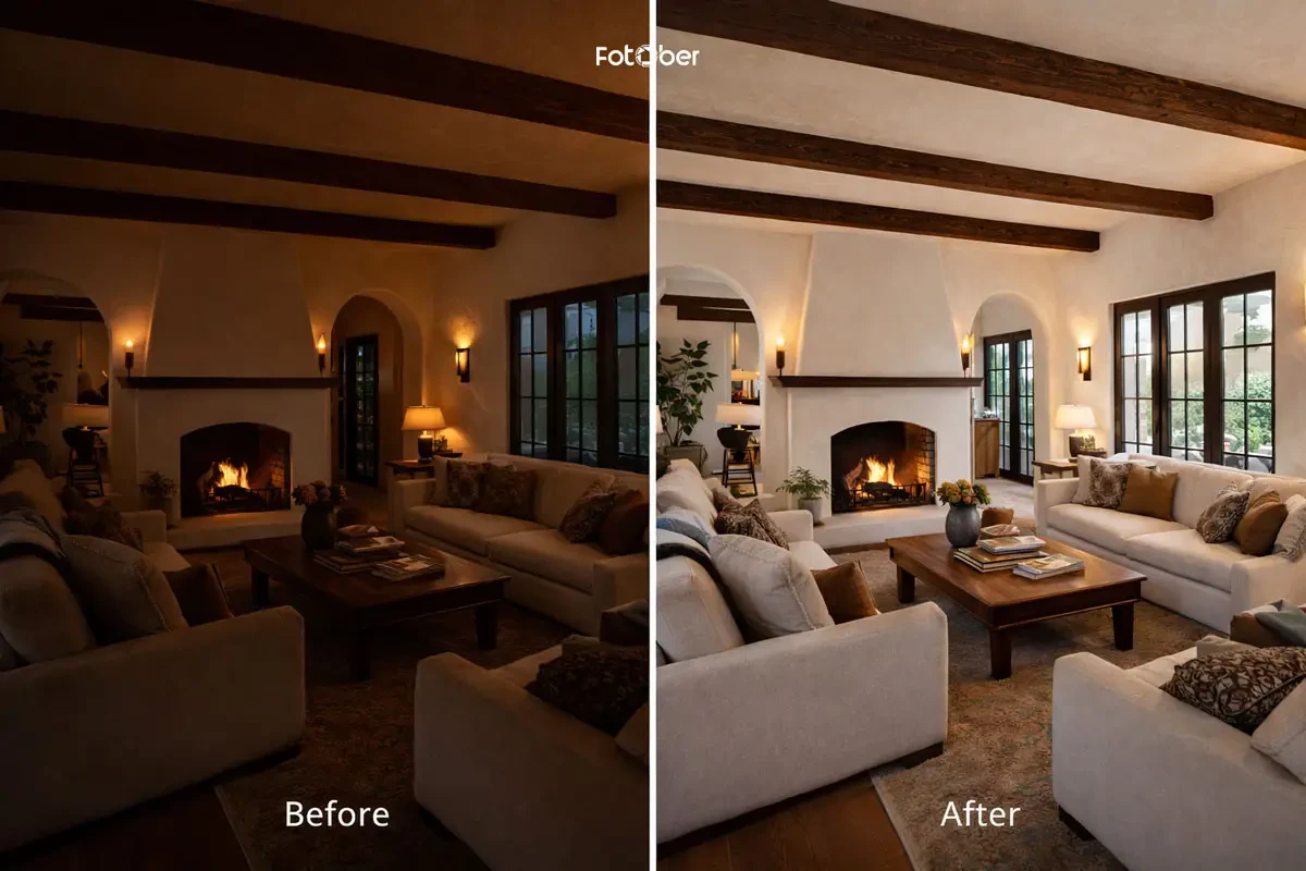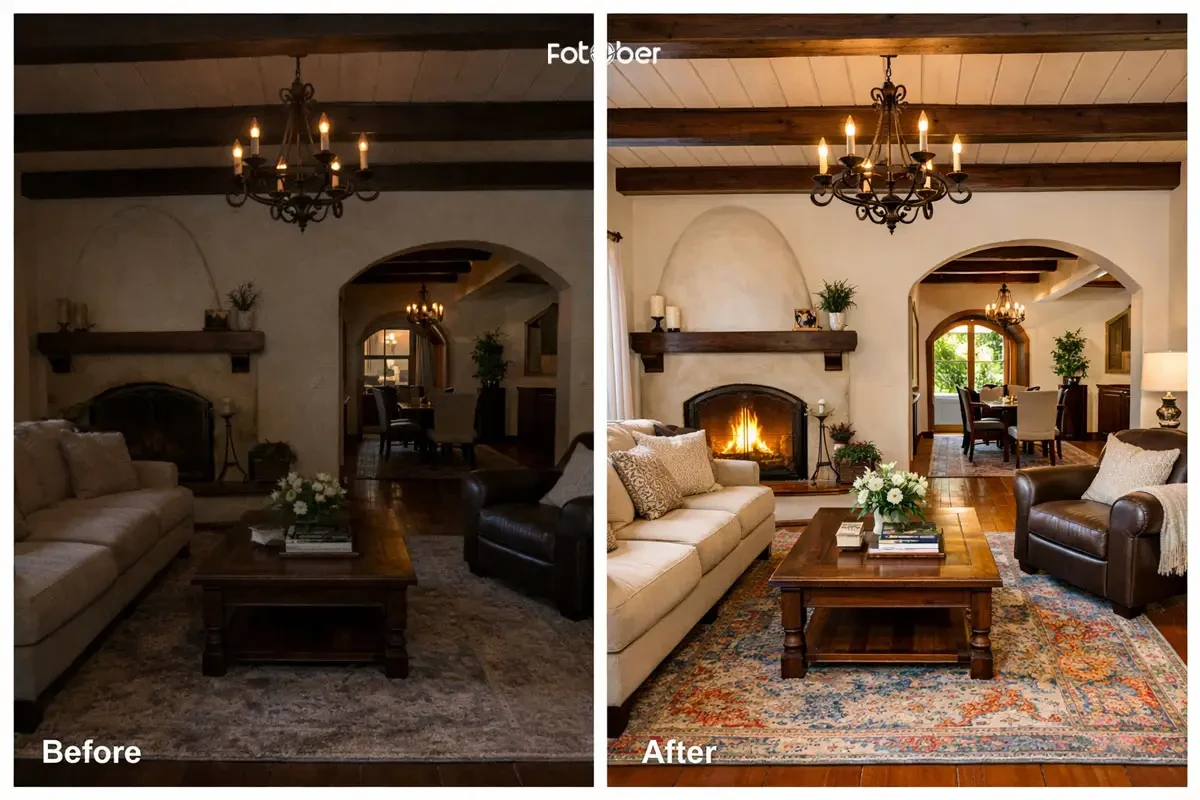 Spanish homes face almost the opposite issue. Their richness can easily turn into visual heaviness if the lighting isn’t right. One of the most common mistakes is underexposing the space, which makes rooms feel smaller and darker than they really are. Another is poor color balance-when warm tones become too saturated or muddy, the entire home can lose its natural charm.