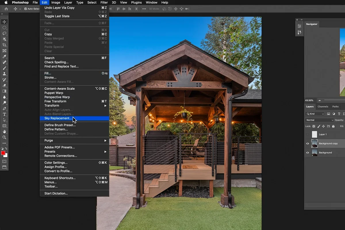 The most common use case is sky replacement. A gloomy, overcast day can make even the most luxurious estate look uninviting. Using Photoshop AI Remove Background features, editors can instantly isolate complex rooflines and replace gray clouds with a vibrant sunset or a crisp blue sky. This "golden hour" effect is proven to increase click-through rates on listing portals like Zillow or Realtor.com.