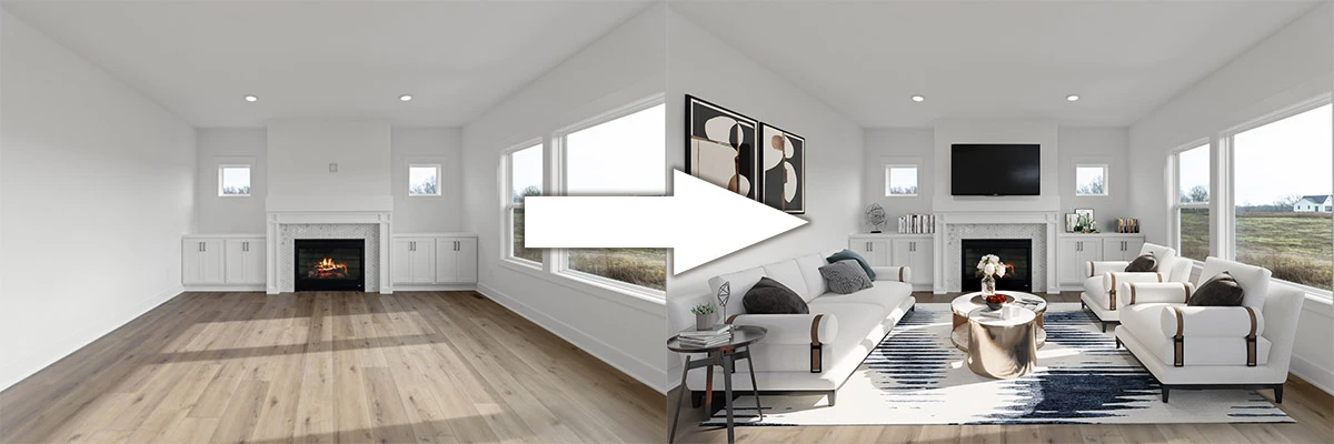 A clean photo with interior items removed is the prerequisite for virtual staging
