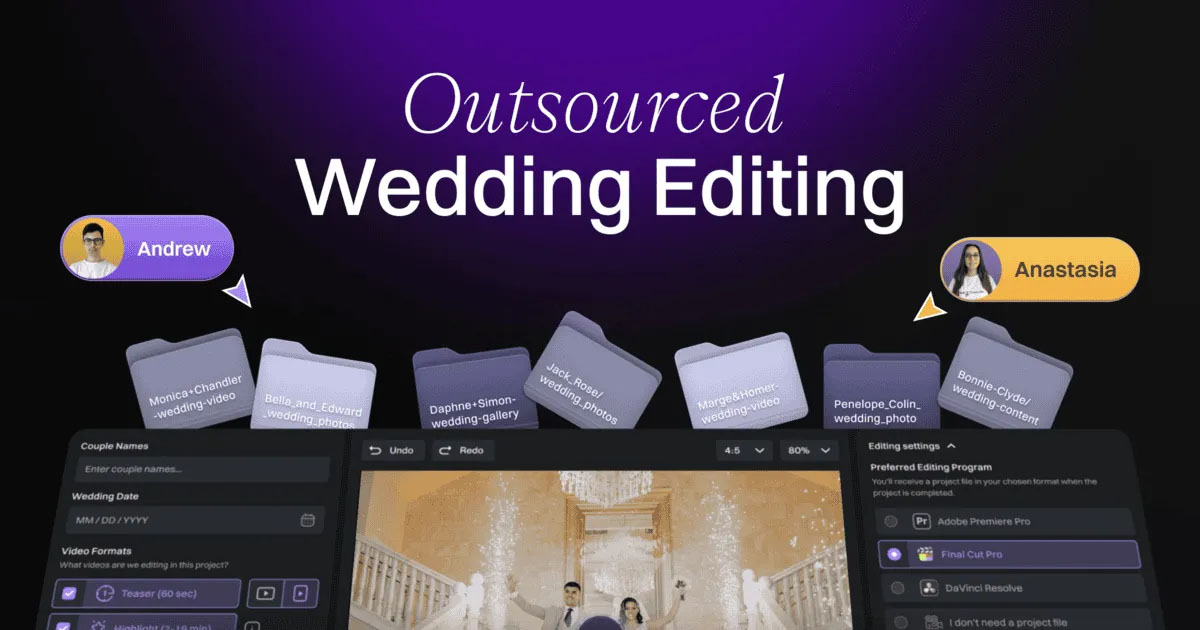 More couples than ever need wedding video services and videographers now have more than enough outsourcing options at their disposal. It’s either partnering with a professional wedding video editing company, hiring a freelance editor, or using new AI video editing tools. While AI may allow faster turnaround times and freelance editors may offer lower costs, neither option delivers the same level of precision, consistency and emotional depth that a professional wedding video editing studio will deliver.