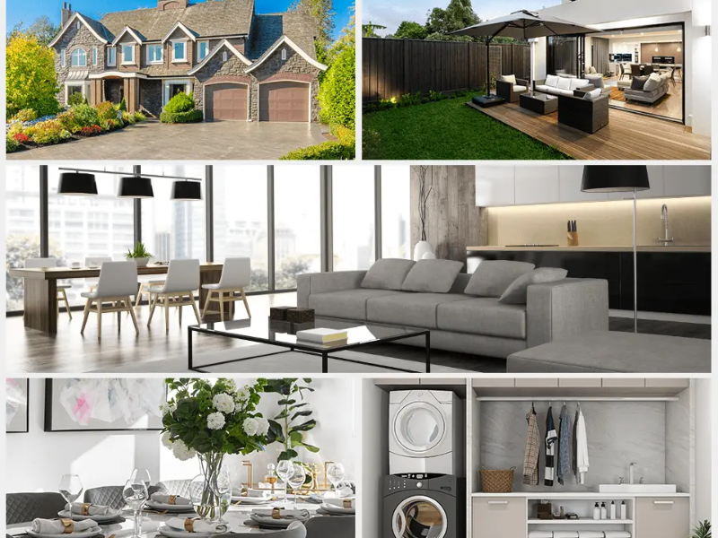 Additionally, include natural elements like trees, gardens, or any unique landscaping features to enhance the photo's appeal. Depending on the property's neighborhood, consider capturing surrounding properties as well, providing context for potential buyers about the overall community.