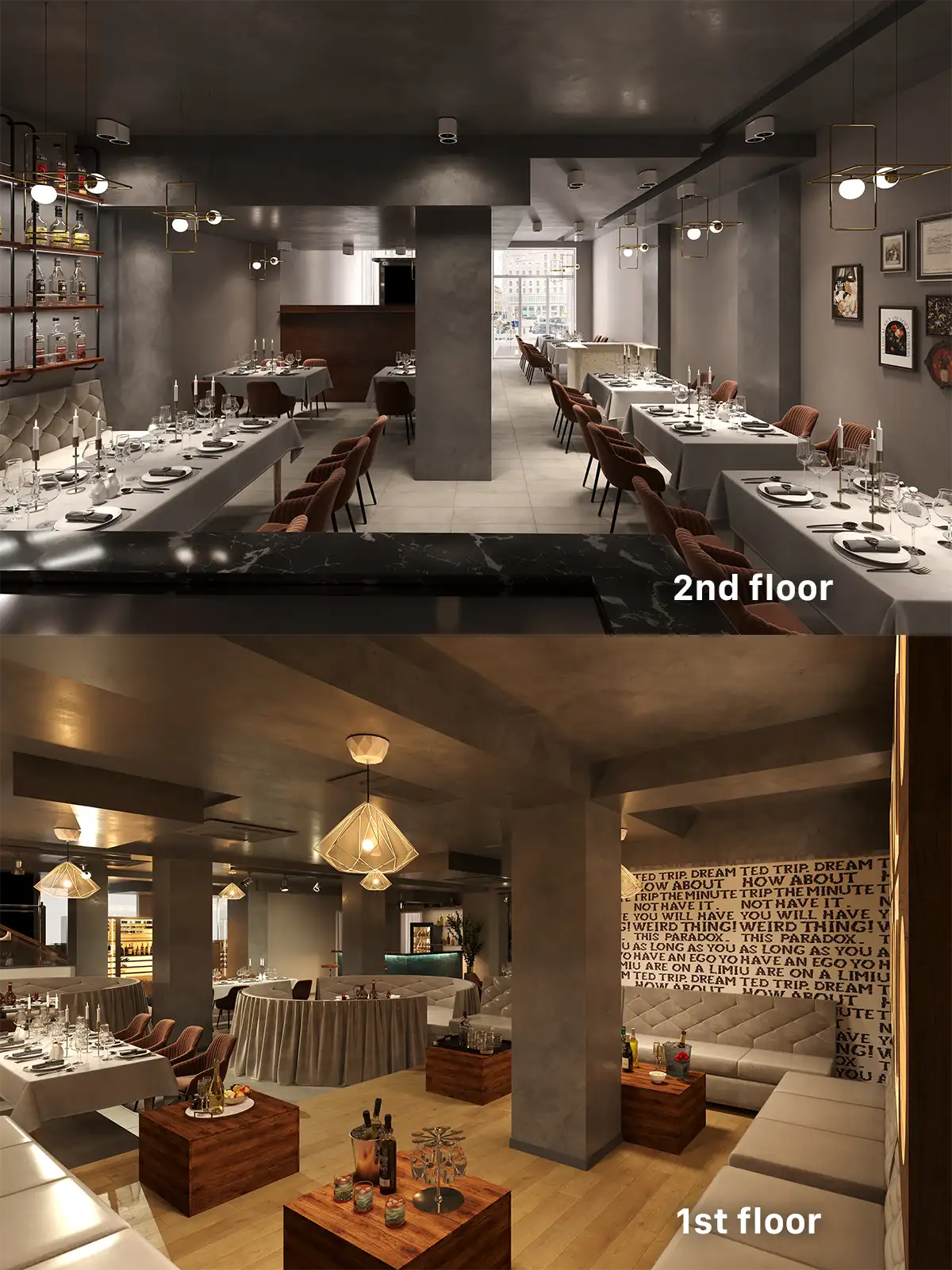 Restaurants can have separate zones for setting different atmospheres on one floor.