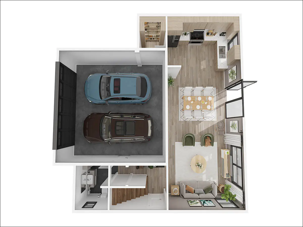 Photo editing can add a layer of lively immersion to floor plans.