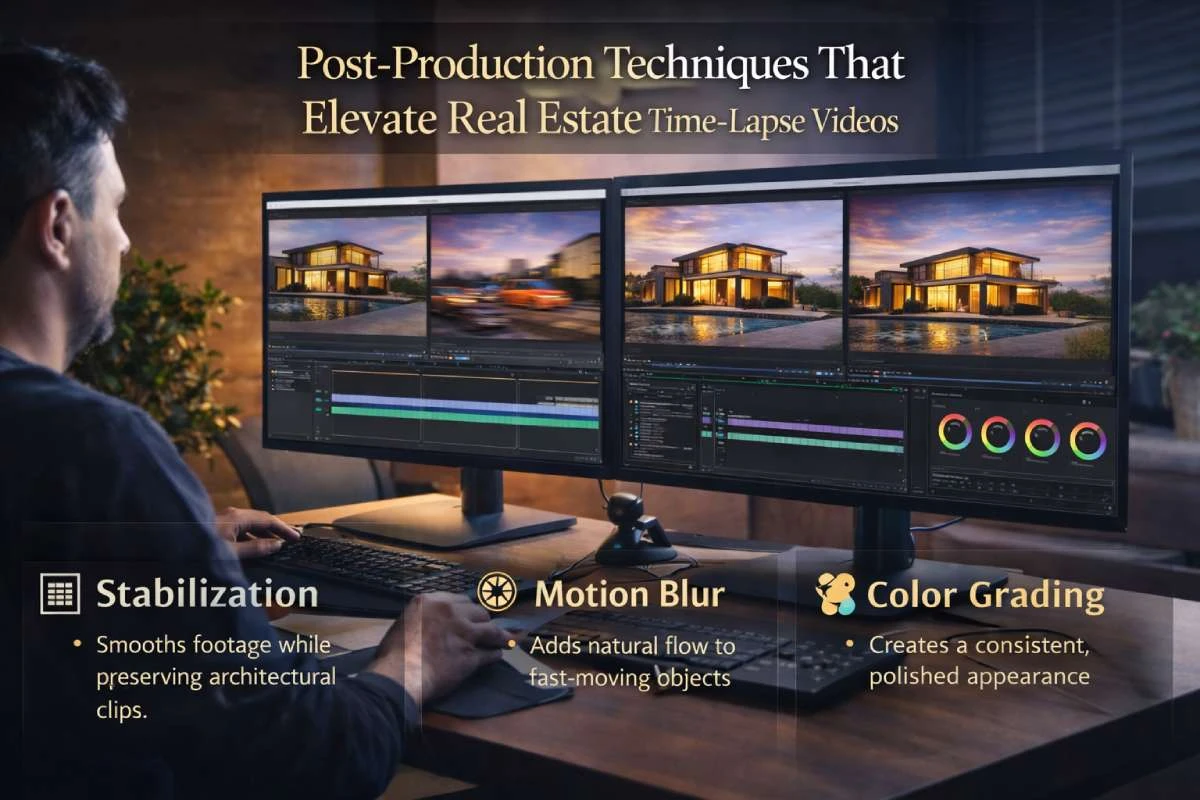 Capturing strong footage is only the beginning. The true impact of time lapse property video techniques emerges during post, production, the stage where thousands of individual frames are shaped into a cohesive narrative that feels intentional, immersive, and professionally refined.