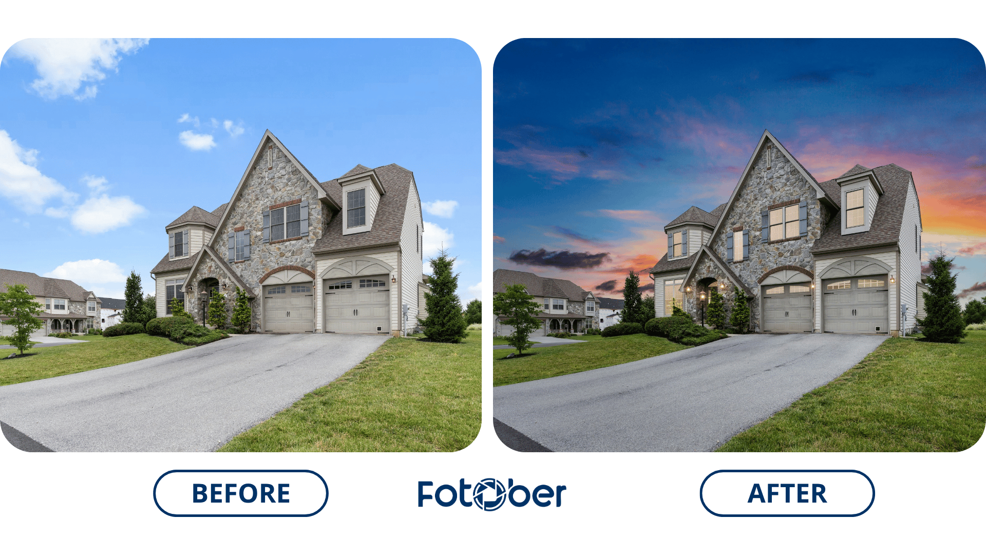 At Fotober, AI-assisted sky replacement can convert a flat, midday drone shot into a warm golden-hour view in under a minute, adding instant emotional appeal.