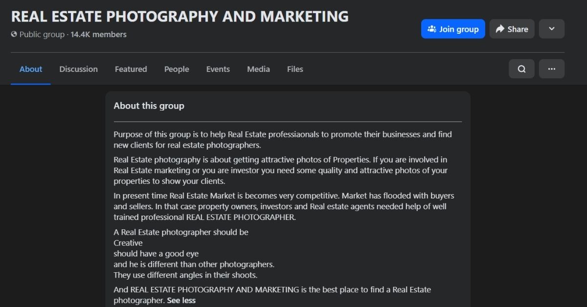 - Link: https://www.facebook.com/groups/photographyrealestate