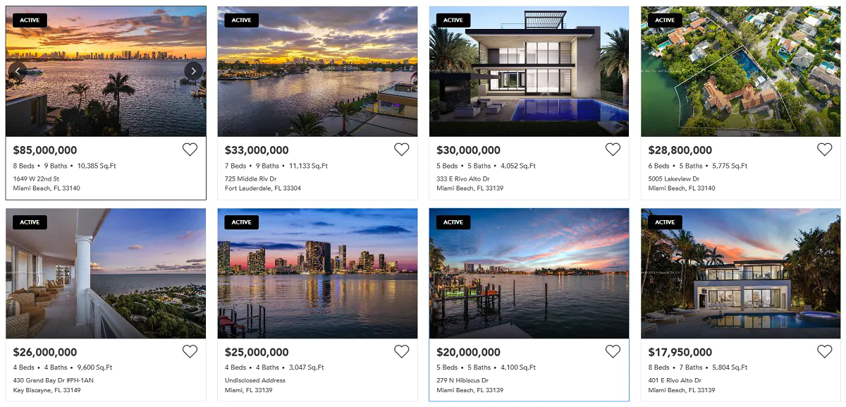 - Property types: Ultra-luxury waterfront estates, mega-mansions (Star Island, Indian Creek, Coral Gables).