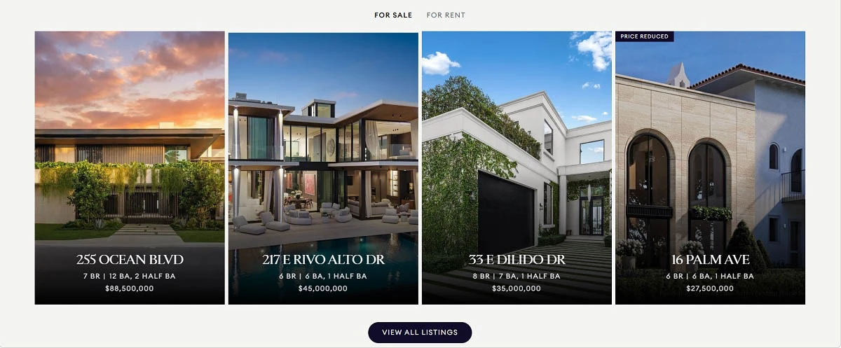 - What makes them stand out: Minimalist exclusivity. Their marketing is understated but incredibly expensive. They use cinematic drone films that focus on privacy and lifestyle, rather than just the house. They position themselves as advisors to the 0.1%, where visual quality is used to signal a "VVIP" experience.