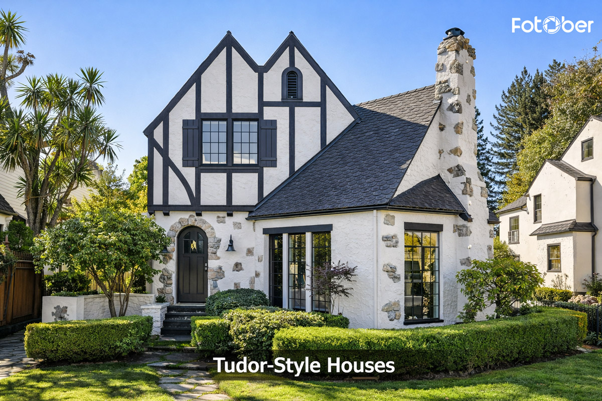 Tudor-style homes are inspired by medieval English architecture and became popular in California during the early twentieth century. These houses are recognizable by steeply pitched roofs, decorative half-timber framing, tall narrow windows, and brick or stucco exteriors. Tudor homes appear in several historic neighborhoods, particularly in older urban communities. Buyers who enjoy classic European design often find Tudor houses appealing because of their distinctive appearance and strong architectural identity.