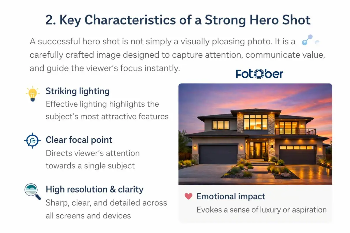 People process images much faster than text. Because of this, the hero image often becomes the first impression viewers form when they encounter a website, advertisement, or online listing. A well-crafted hero shot immediately communicates quality, professionalism, and value.